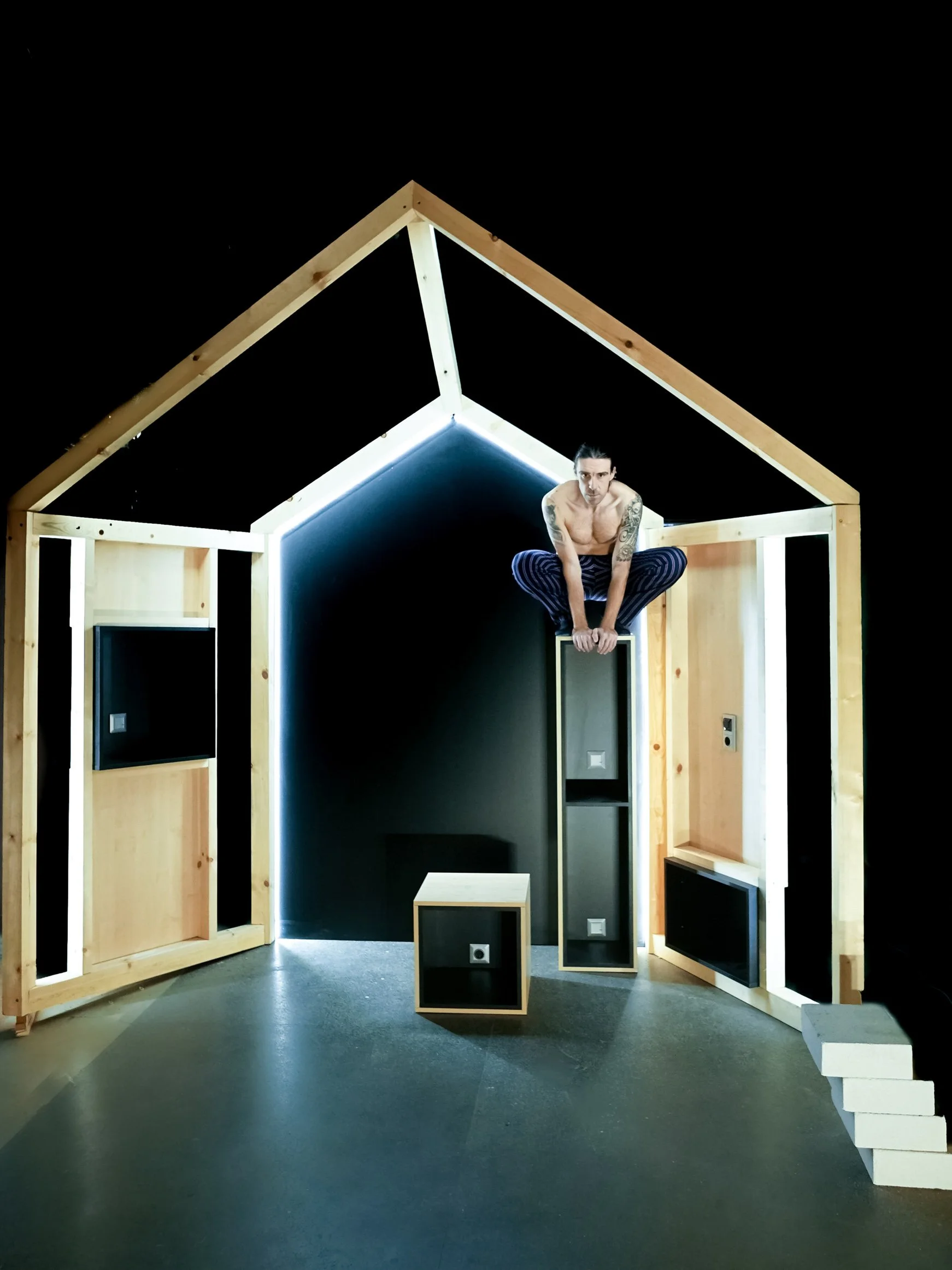This performance is an immersive theater-labyrinth that takes the audience on a sensory journey and makes them dive in a closed world, a mixture of feelings and emotions. In “Feel Me” the interior design reveals its potential to transform daily routine into art. The art installations and the spatial design challenge each one of the senses.